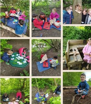 Forest School completing texture trails, challenge cards and mindful breathing.